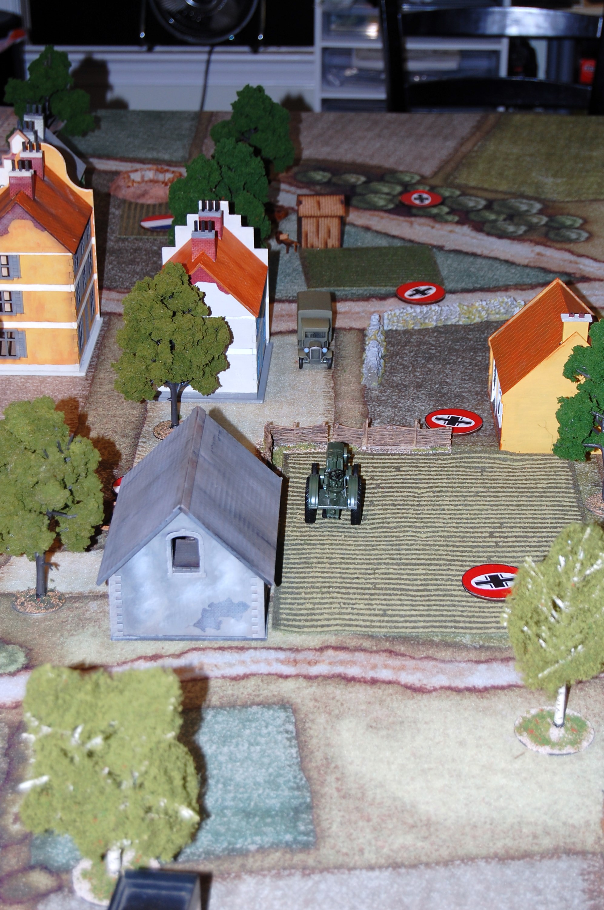 Schraeder sent his granatewerfer team forward to the wall surrounding the central field and the MG34 team of 3 Gruppe into the small farm house to its left. They started to receive frie from the French rifle grenades brigaded together in a fox hole to the rear. The firing was ineffective but the MG 34 and the 5cm Mortar opened up on the position.