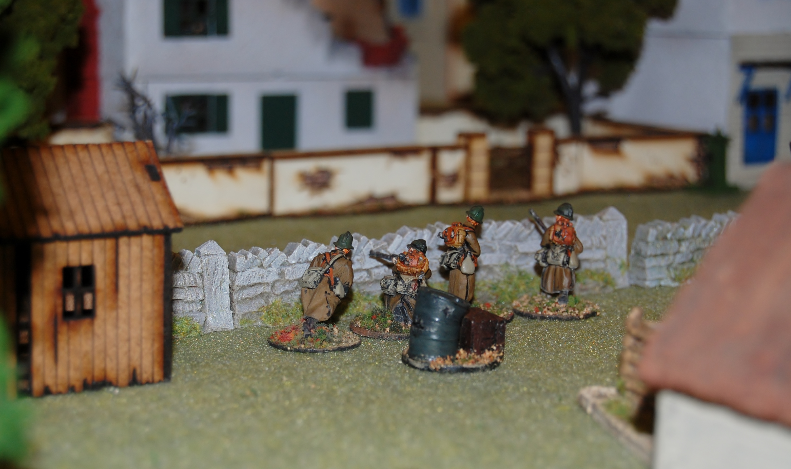 After this point the French settled into a static defense of the rear wall and the game turned into a long drawn out exchange of small fire. Never the best course of action in a Chain of Command game and certainly not one when opposing a larger force also in defensive positions.